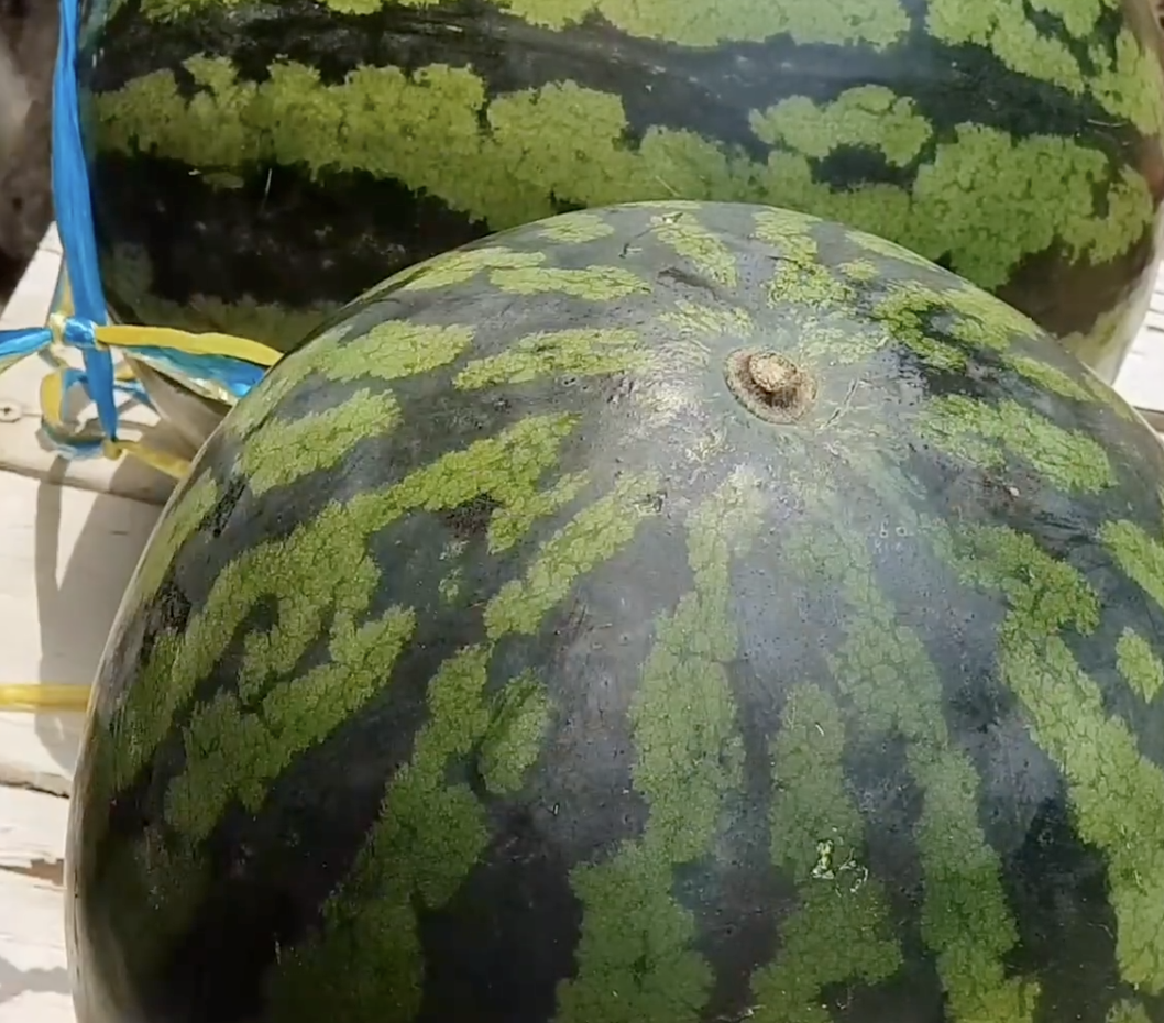 2. 수박 줄무늬가 굵고 진한 것 (가위로 가르친 부분)