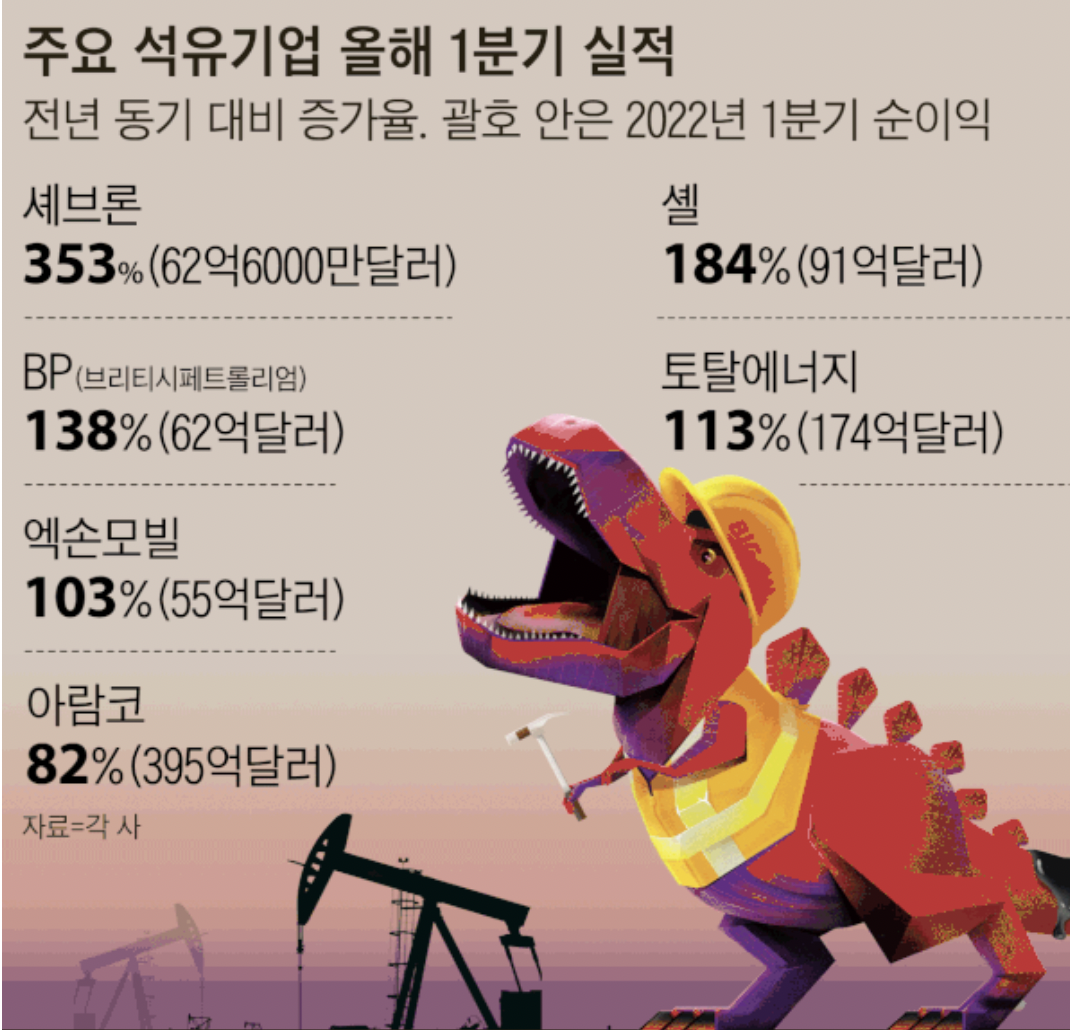 지난주 41년 만에 최악의 물가상승률을 기록한 조 바이든 미국 대통령이 (글로벌 석유 메이저인) 엑손이 지난해 하나님보다 더 많은 돈을 번다고 비판했습니다. 빅 테크에서 석유로... 최고치 시가총액 분석 사이트인 사우디 국영석유회사 컴퍼니마켓캡에 따르면 사우디 아람코의 시가총액은 2조3690억달러(약 3047조원)에 달해 애플을 제치고 세계 증시 1위 자리를 탈환했습니다.