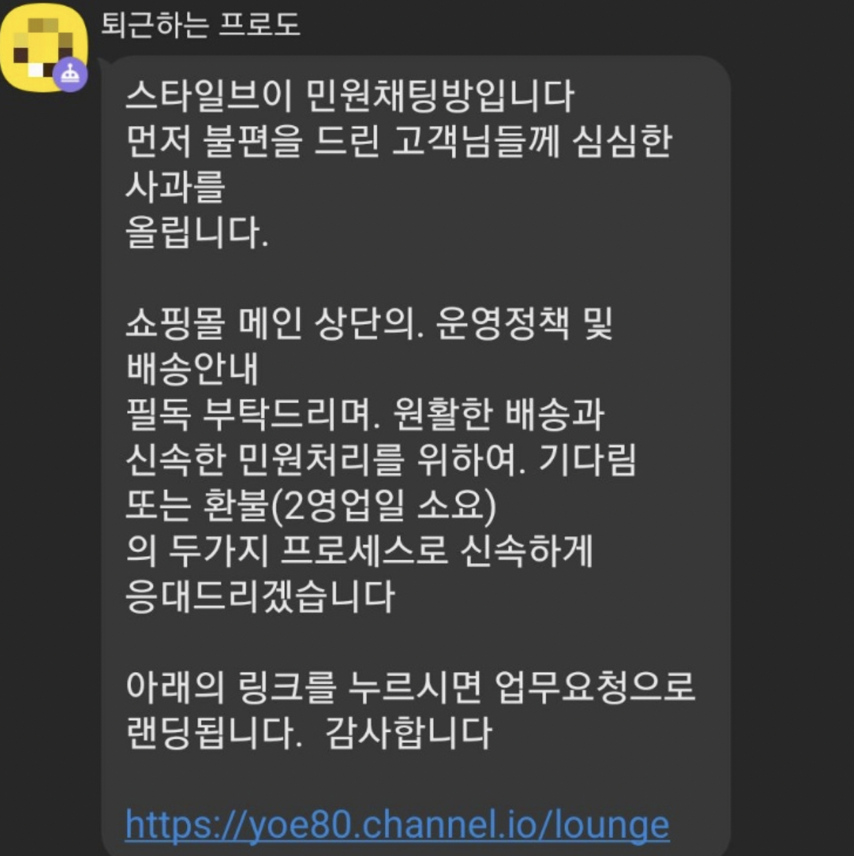 스타일브이에서 배송을 빨리 받는 방법을 알려 드립니다. 아래 카카오톡 오픈 채팅방에 참여를 하시면 상담사들이 배송을 확인해 주고 있다고 하네요.