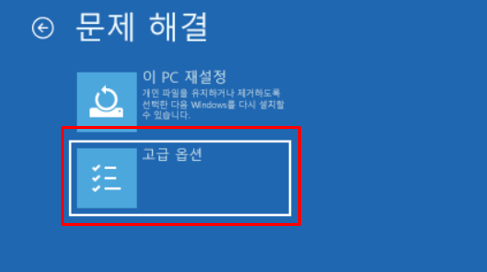 ③ 옵션 선택 화면이 표시되면 다음 과정을 통해 안전 모드 선택이 가능합니다. (로그인 화면에서 안전모드로 진입한 것과 방법은 동일합니다.)