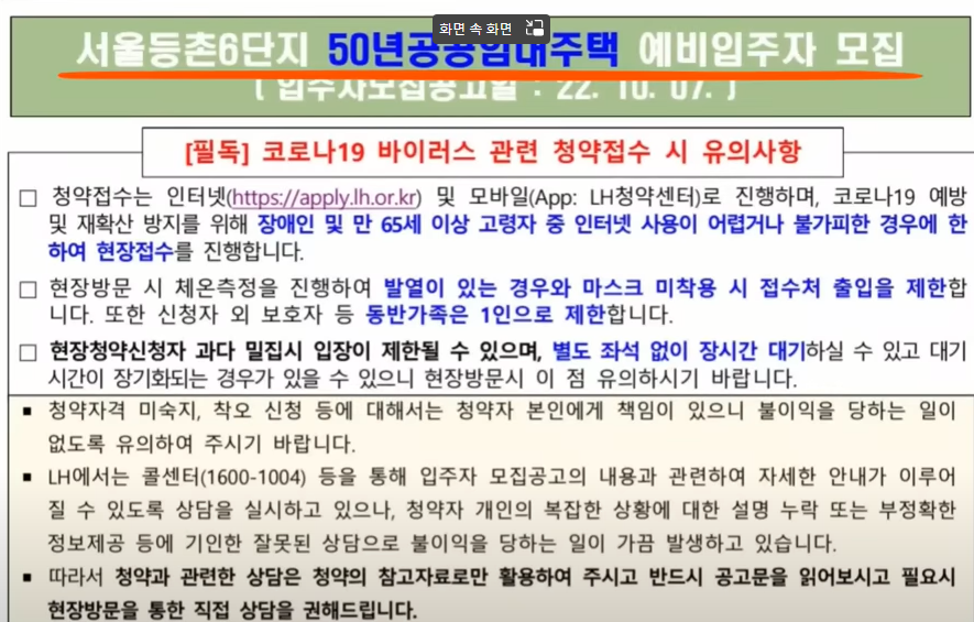 이 모집 공고문은 서울 등촌 6단지 50년 공공임대 아파트 예비 투자 모집 공고문입니다 가장 먼저 모집 신청과 관련하여 매우 중요한 사항부터 보겠습니다.