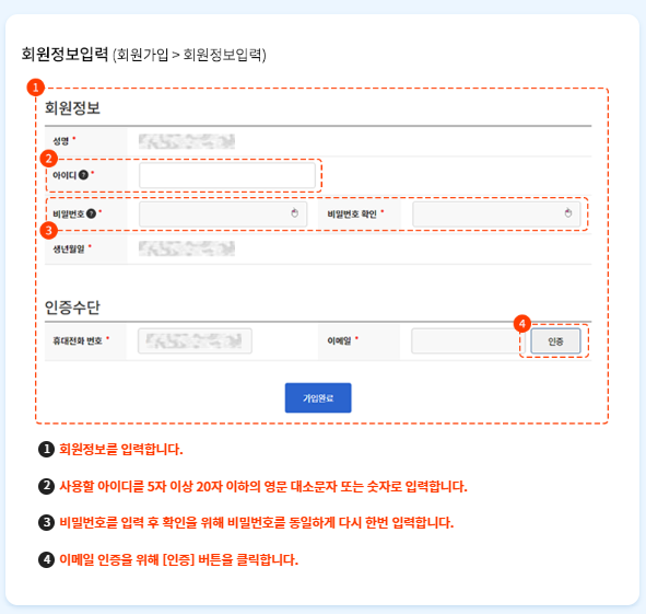 4. 자신의 개인 회원 정보를 입력하여 회원 가입