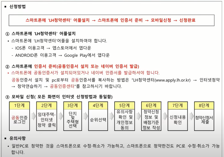 인터넷 신청 방법을 알려드립니다 우선 인증서 또는 공동인증서를 미리 준비하시고 LH 인터넷 청약 시스템에 접속하셔서 다음 신청 방법 8단계를 참고하시어 신청 접수를 진행하시면 됩니다.