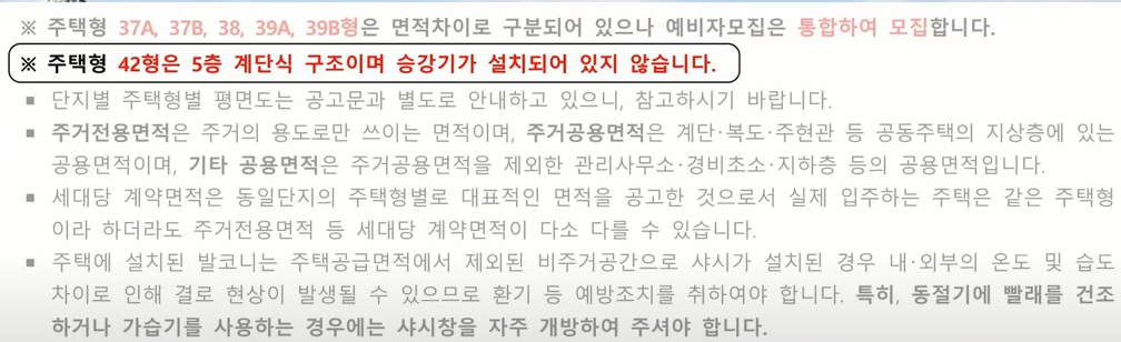 모바일에서 역시 동일한 화면 구성으로 동일하게 진행할 수 있습니다 유의사항으로 신청 시 계단 이용에 불편하신 분들은 42형의 경우 5층 계단식 구조로 승강기가 없어 계단을 이용해야 한다는 점 참고하셔서 신청하시길 바랍니다.