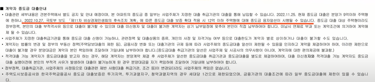 이 부분도 조금 아쉬운 대목이고요 중도금 대출은 입주자 모집 공고에서도 밝히고 있듯이 12억 이하 주택형에 대해서는 중도금 집단 대출이 가능할 것으로 보입니다. 지금 둔촌주공 공정률이 50% 선까지 올라와 있어서 중도금 납부 일정이 빠듯한 편입니다.