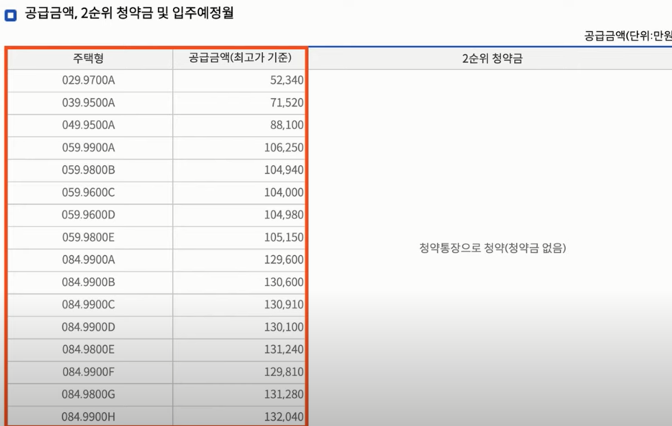 59 제곱 위한 소형 평수는 8억 이하의 분양가고요 오구 제곱은 10억 4천에서 10억 6천 사이 그리고 84 제곱은 12억 9천에서 13억 2천으로 서로 뚜렷한 분양가 경계를 이루고 있고요 가장 중요한 대출 부분은 84 제곱이 모든 타입에서 12억이 넘어가는 분양가를 내놨기 때문에 기본적으로 12억으로 확대된 중도금 대출 혜택을 전혀 받을 수가 없게 됐습니다.