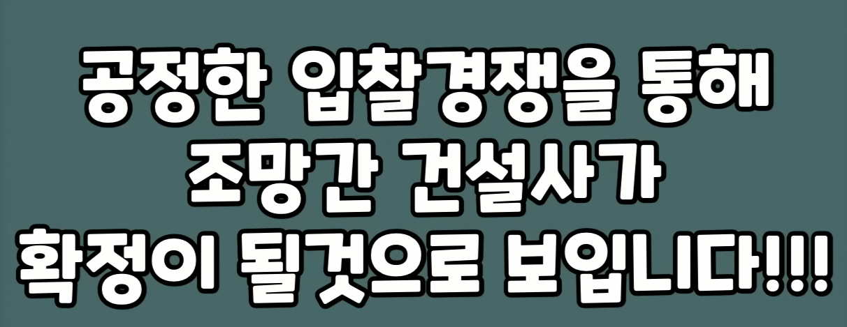 이번 주에 새로운 소식이 업데이트됐습니다 바로 공공분양 청약에 들어가는 데 있어서 제일 중요한 건설사를 선정해야 하는 자금이 남아 있는데요 국내 굴지의 아파트 1차 브랜드사들이 눈독을 들이고 있다는 얘기도 전해지고요 공정한 입찰 경쟁을 통해서 최종적으로 건설사가 확정될 것으로 보이고요 아마 유명 브랜드가 들어설 것은 확실해 보입니다.