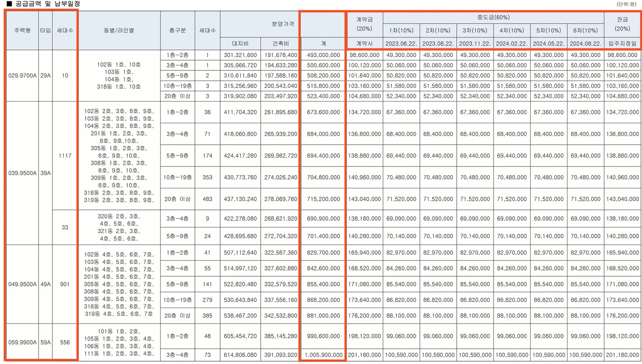 1차가 2022년 6월 22일 2차는 8월 3차가 11월 이런 식으로 마지막 6차가 2024년 8월 22일로 마감이 되죠 2~3개월 단위마다 분양가의 10%를 마련해야 하는 작은 부담이 있다는 걸 염두에 두시고요 이렇게 분양가와 평면 논란 때문에 청약이 시작되기도 전에 진입이냐 패스냐가 이미 결정이 되어버린 것 같아서 여러모로 아쉬운 점이 많이 남습니다.