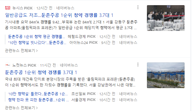 6일 저녁에 드디어 둔촌주공아파트 1순위 접수가 마감이 됐습니다. 1순위 청약 접수에 따라서 향후 서울 분양단지들의 거취가 결정될 정도로 굉장히 상징적인 부분이 있어서 관심이 집중됐는데요 다소 의외의 결과가 나왔습니다.