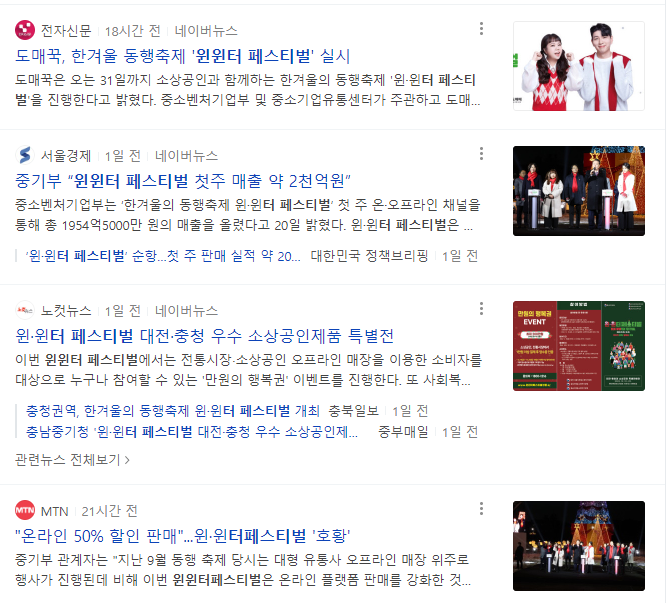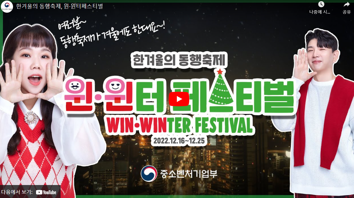 [한겨울의 동행축제, 윈윈터 페스티벌] 동행축제의 겨울버전 '한겨울의 동행축제, 윈·윈터 페스티벌'을 개최합니다. 중소기업과 소상공인을 위한 특별 할인판매부터 소외계층을 위한 나눔까지
