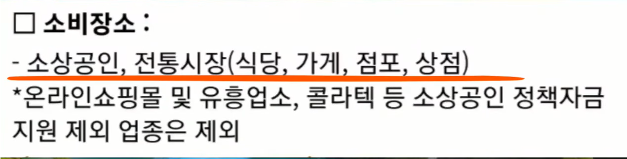 응모 대상으로는 만 14세 이상 대한민국 국민이면 전국민 누구나 신청 가능하며 소비 장소는 이렇습니다. 소상공인 전통시장 식당 가게 점포 상점으로 온라인 쇼핑몰 및 유흥업소 콜라텍 등 소상공인 정책자금 지원 재해 업종은 당연히 제외됩니다.