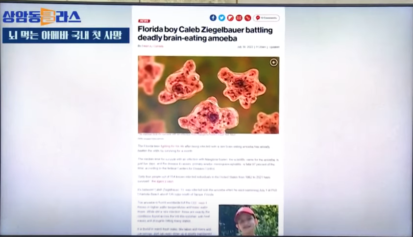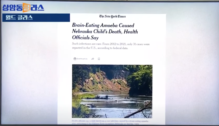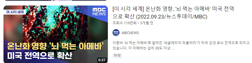 뇌를 먹는 아메바에 감염된 한국인의 첫 사망사례가 발표되었습니다. 문제는 지구 온난화로 인해서 갈수록 아메바의 서식이 늘어나고 있는 것인데요. 치명률이 97%라니 이 내용 꼭 읽어 보시고 미리 예방하시기 바랍니다.