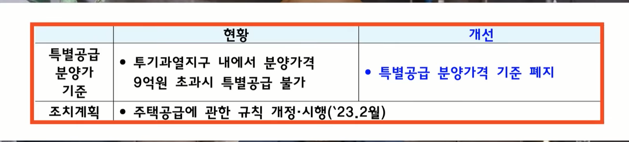 아마 새로운 전환점이 되지 않을까 예상을 해 볼 수 있겠고요 청약을 준비하는 분들 입장에선 특별공급에서도 9억이 넘어가면 특공 물량이 전혀 나올 수 없었는데 이 분양가 기준도 어제 해제를 해버리게 됐습니다. 그래서 이후 9억이 넘어가는 신축도 특별공급이 나오게 된다는 거고요 이 부분은 나름 현실적으로 접근할 수 있는 부분이 있습니다.