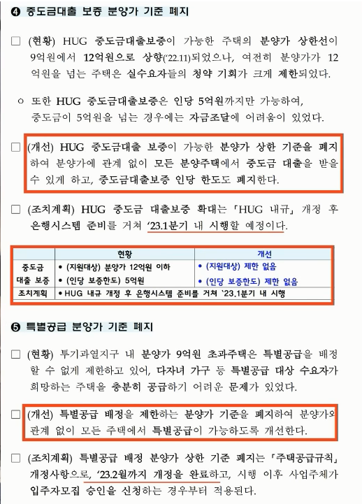 결론적으로 12억이 초과가 돼도 중도금 대출이 가능할 수 있게 된다는 것입니다. 이 부분은 둔촌주공 아파트 84 타입에 결정적인 영향을 미칠 수밖에 없는 것입니다. 84 제곱 분양가가 13억이었습니다. 전혀 중도금 대출을 받을 수 없었죠 시기도 2023년 1분기 내에 시행을 하기 때문에 계약금 내고 중도금 시작할 즈음에이 규제가 적용이 될 수 있다는 것입니다.