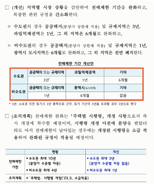 둔촌주공이 기본적으로 실거주 의무가 2년이었습니다 근데 결정적으로 이게 소급 적용이 되죠 그리고 더욱 결정적인 건 전매제한이 완화가 됩니다. 수도권 규제지역은 3년 과밀억제권은 1년 기타는 6개월 둔촌주공이 분양권 거래가 된다는 얘기입니다.