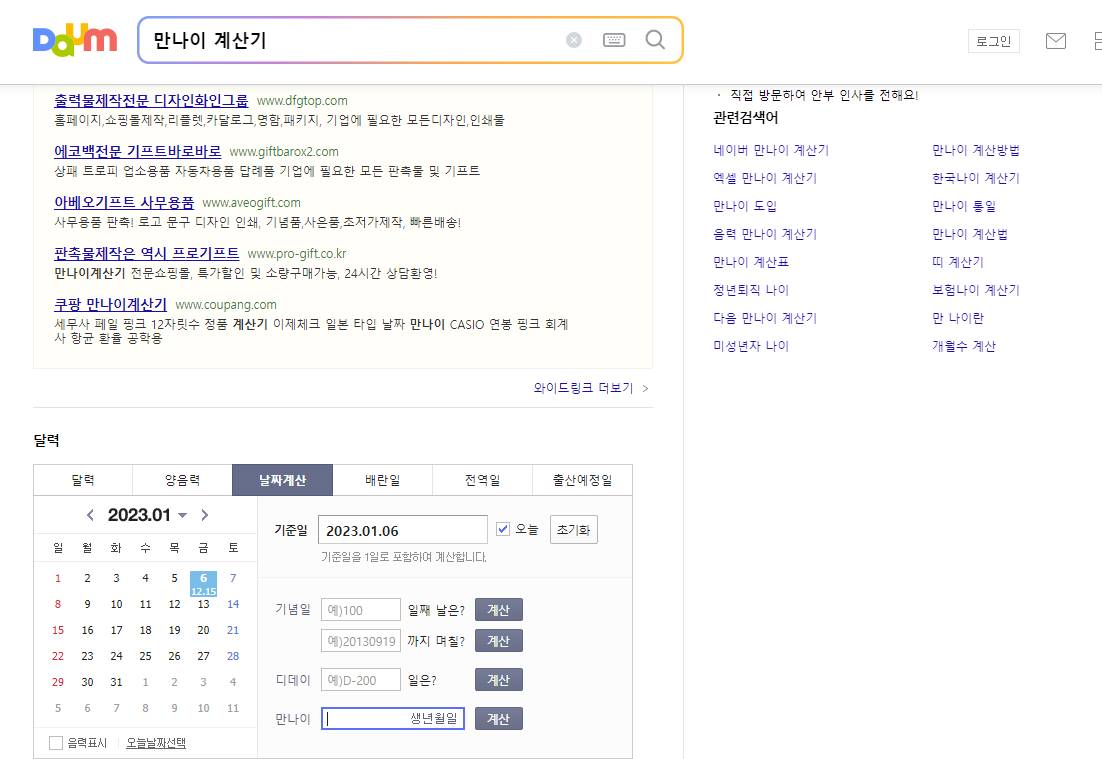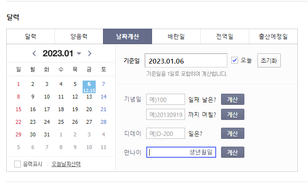 만나이 계산기 : 네이버 통합검색