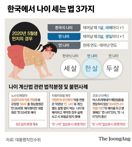 만 나이의 개념은 우리나라 민법상 공식으로 채택하고 있는 나이입니다. 그런데 만 나이가 혼란스럽고 어려운 이유는 한국식 세는 나이를 동시에 사용하고 있어서입니다.