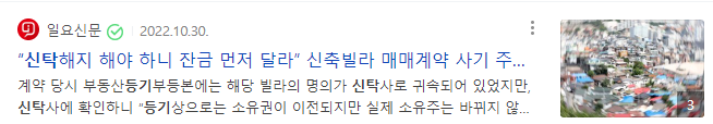 저는 2008년 경에 이런 사건을 당했는데.. 20년이 훨씬 지난 지금에도 동일한 사기가 성행하고 있는데.. 관계부터는 아무런 보완책을 내놓지 않고 있네요.. 이러니 사기꾼 근절이 되지 않는 사기 공화국이 되었지요..더이상의 신탁으로 인한 선량한 피해자들이 나오지 않기를 기원하면서..