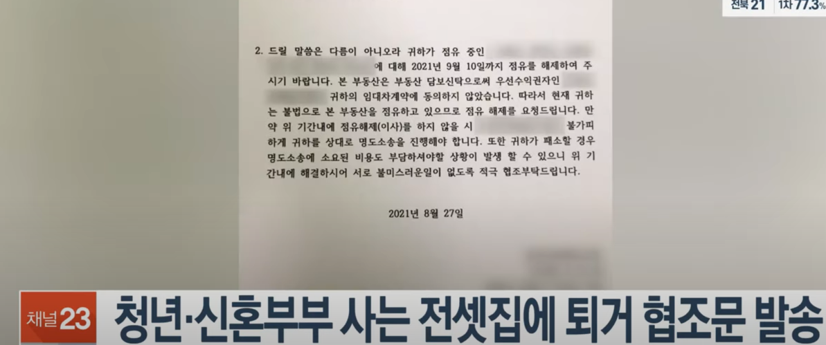 소송의 진행 해당 사안으로 피해 입주민들은 모여서 KB부동산 신탁을 상대로 "임대차 확인 소송"을 진행하였습니다. 기존에는 무슨 근거로 임대차 확인 동의서를 발부해 주었으며.. 당신들의 동의서가 사고를 발생시키는데 직간접 영향이 되었다..라고 주장을 하였는데.. 저희 사건을 들어본 법무법인들은 대부분 소송을 해봐야 진다며 저희 사건을 담당하려 하지 않았고.. 찾다 찾다가 저희 사건을 담당하는 법무법인이 나와서 민사 소송을 진행하였고 길고 긴 3년여의 투쟁에 들어갔습니다.
