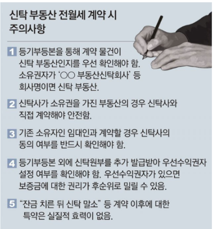 중개업자는 “신탁 부동산이더라도 걱정할 것 없다. 이 집은 안전하다”며 수차례 설득했습니다. 오히려 신탁이 되어있어 더 안전하다며 문제가 생기더라도 우선순위로 보증금을 돌려받을 수 있다는 말까지 하며 저를 안심시켰습니다.