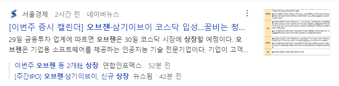 지난주 미래반도체가 따상이 나왔던 만큼 공모주에 대한 기대감이 계속 커지는 가운데 오브젠, 삼기이브이, 꿈비등의 공모주들 중 어떤 종목이 좋은 결과를 보여줄지 지금 더 확인해 보도록 하겠습니다.
