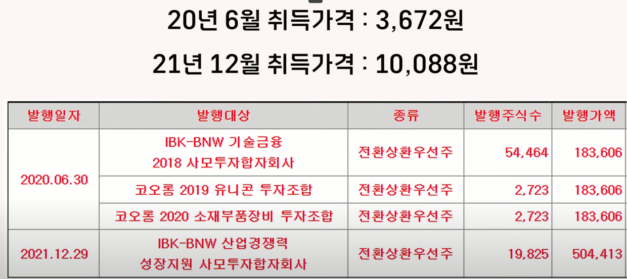 그리고 증권신고서를 읽다 보니까 최근 발행했던 우선주 취득 가격을 알 수가 있었는데요 20년 6월에 취득했던 가격은 183,600원이었고 21년 12월에 취득했던 가격은 약 50만 4천 원이었습니다.