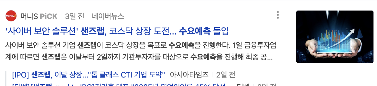 삼기이브이가 또 폭발했죠 초반 따상 터치한 이후에 종가는 144% 수익률로 마감했습니다. 최근 공모주 분위기 거의 미처 날뛰는 수준인데 다음 주에 또 샌즈랩 공모주가 청약을 하죠 수요예측 결과가 나왔는데요 바로 결과 확인해 보겠습니다.