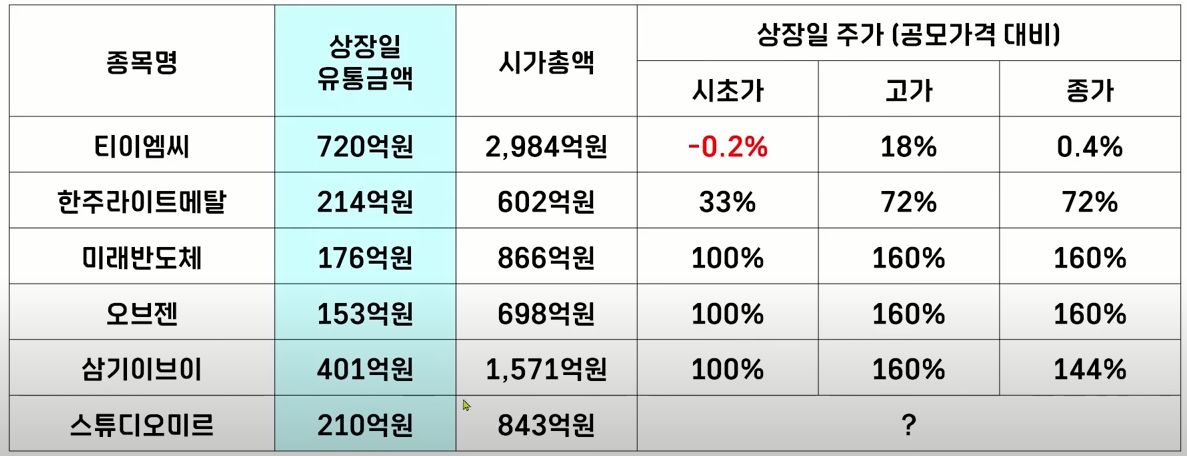 여하튼 시초가가 더블로 시작하느냐가 먼저니깐요 상장이 흐름을 보면서 판단을 해봐야 되겠죠 그래서 미르는 스톡옵션 물량이 변수가 되긴 하지만 그래도 스톡옵션을 제외하면 유통 금액 210억 원이거든요 그리고 청약이 아주 흥행했었잖아요 그래서 웬만하면 시초가는 더블로 시작을 하지 않을까 기대를 하고 있습니다.