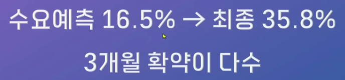 모집 수량 중에 3.5% 비중으로 35000주를 우리 사주 조합에 배정을 했었죠 직원들이 모두 청약을 했더라고요 그래서 우리 사주가 완판되었으니까 일단 긍정적이라고 보고 있습니다. 그리고 최종 의무화계약도 많이 올라갔는데요 의무확약이 35.8%가 되었습니다.