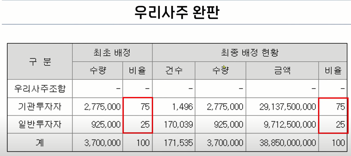 샌즈랩은 우리 사주 조합에 배정하지 않았었죠 그래서 기관투자자에게는 75% 일반투자자에게는 25%의 비율로 계획대로 배정이 완료가 되었습니.다 최종 의무 확약은 5.7%이었는데요 수요예측에서 의무확약 신청이 1.4%이었습니다. 약 4배 정도 늘어났는데요 개인적으로 10% 이상을 기대를 하고 있었거든요 결과를 보고 조금은 시무룩해졌습니다.