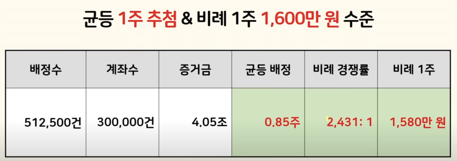 그래서 균등은 85% 확률로 추첨이 되고요 비례 한 주는 1600만 원 수준 필요할 것 같습니다 온라인 최고 한도로 청약한다면 균등까지 하면 최대 4주까지 받을 수 있는 경쟁률인데요 같은 날 또 삼성 스펙 8호 바이오 인프라도 있기 때문에 자금은 더 분산될 수 있습니다.