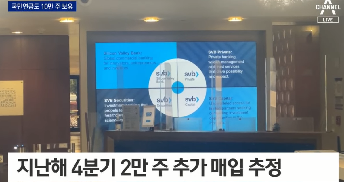 미국 증권거래위원회 공시에 따르면 국민연금은 지난해 12월 말 기준 svb 파이낸셜 그룹의 지분 10만 700 여주를 보유했다고 신고했습니다. 지분 가치는 지난해 말 기준 2300만 달러 우리 돈으로 약 300억 원 규모입니다.