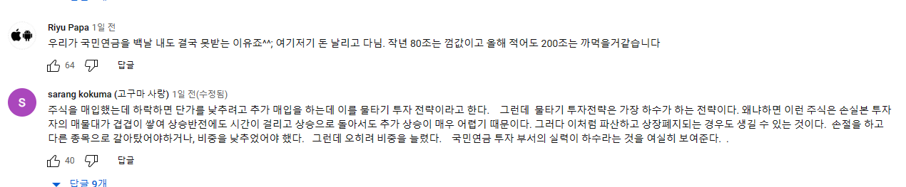 아래는 이번 국민연금 사태에 대한 네티즌들의 반응입니다.