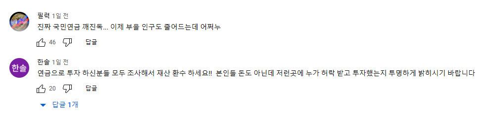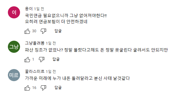 아래는 이번 국민연금 사태에 대한 네티즌들의 반응입니다.