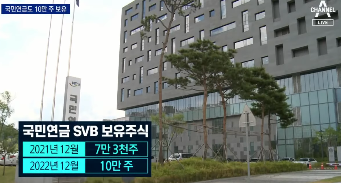 미국 증권거래위원회 공시에 따르면 국민연금은 지난해 12월 말 기준 svb 파이낸셜 그룹의 지분 10만 700 여주를 보유했다고 신고했습니다. 지분 가치는 지난해 말 기준 2300만 달러 우리 돈으로 약 300억 원 규모입니다.