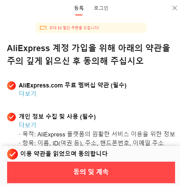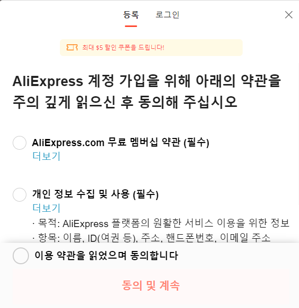 알리익스프레스 1분 회원 가입 방법