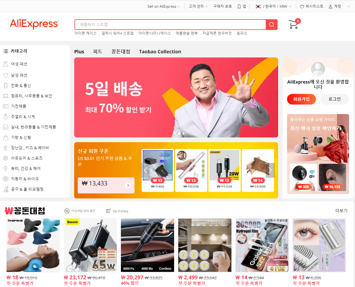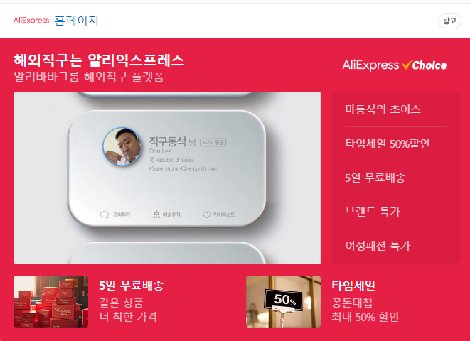 알리익스프레스가 얼마나 유명해졌는지 이제는 국민배우 마블리 "마동석"님이 광고를 다 하시네요..문제가 있는 외국의 허접한 사이트라면 마동석님이 광고를 맞아 진행을 하실리가 없겠죠?