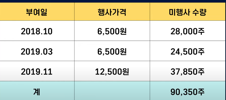 그래서 임원들이 보유한 물량을 제외하고 공모 가격보다 낮은 가격으로 행사를 할 수 있는 스톡옵션만 따로 분류를 해보았는데요 6500원으로 행사할 수 있는 수량이 약 5만 주 정도 되고 12,500원으로 행사할 수 있는 수량은 약 38,000주 정도 됩니다.