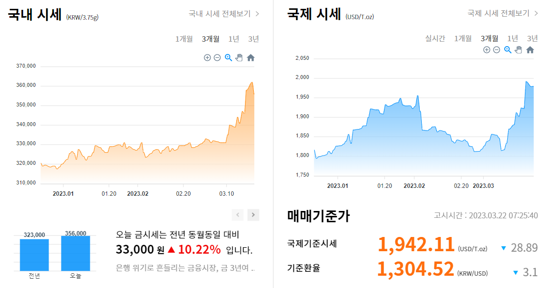 종전 금 최고가는 코로나19로 유동성이 풀려있던 2020년 7월 28일 기록한 8만2천970원 입니다. 글로벌 금융시장이 불안해지면서 안전자산을 선호하는 움직임이 커지자, 금값이 폭등했습니다. 미국 실리콘밸리은행 파산에 이어 크레디트스위스까지 유동성 위기에 몰리면서 달러도 못 믿겠다는 불안심리가 터져 나오고 있는 겁니다.