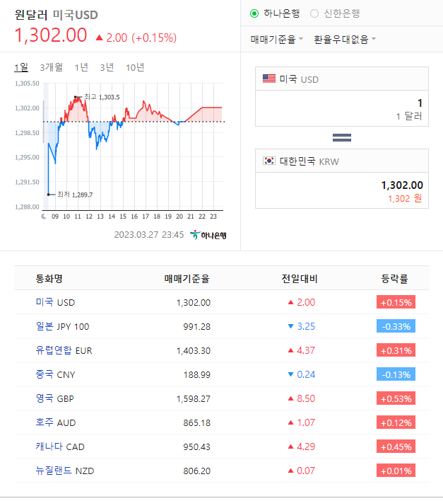 3월 28일 오전 7시 15분 기준 원달러 1,320,00 원 전일대비 2.00% 상승하고 있습니다.