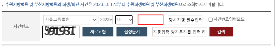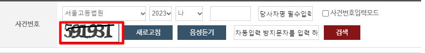 5. 사건번호까지 다 입력이 끝나셨으면 이제 검색을 클릭하시면 됩니다.
