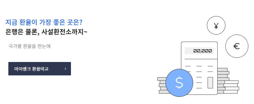 마이뱅크라는 앱을 활용을 하시면요 실시간으로 지금 현재로서 어느 은행의 환율이 좋은지 그리고 환전소 어디 추천할 만한 곳인지 그리고 거리순이라고 되어 있잖아요 어디가 가까운데 환율이 좋은지 그리고 수수료가 얼마인지까지도 바로바로 앱을 통해서 확인하실 수 있습니다.