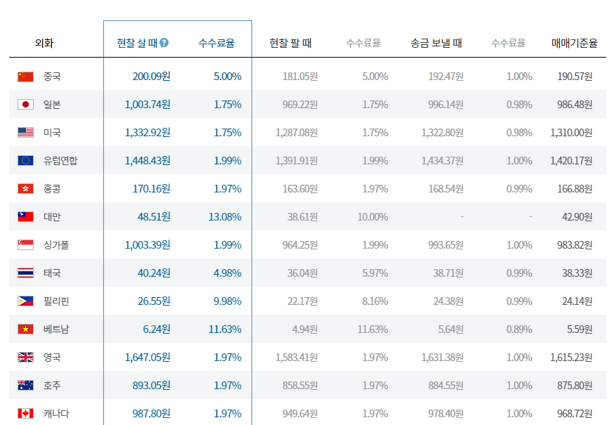 환전 수수료 정리