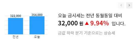 국제표준금거래소에서는 내가 살 때 순금 1돈은 349,000원으로 전일과 같았으며, 팔 때는 302,000원으로 전일 보다 1,000원 올랐습니다.