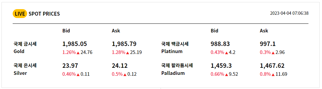 오늘의 금시세 4월 3일 아침 8시 기준 그리고 금투자 방법에 대해서 정리하였습니다. 최근 팬데믹과 뱅크런 등으로 인하여 안전자산에 대한 수요가 급증하고 있는 상황으로 금과 같은 안전 자산