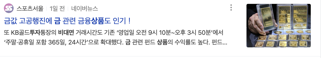 그래서 요즘에는 손실의 위험이 높은 실물 금보다는 금 관련 상품에 투자를 권하고 있는데요.. 실제로 실물 금을 보유하지 않고도 금에 투자할 수 있는 상품이 인기를 끌고 있습니다. KB국민•신한•우리은행의 금 통장 계좌의 잔액은 1월 말 5212억 원에서 2월 말 5168억 원으로 줄었다가 3월 말 5186억 원, 4월 5298억 원으로 증가했다고 합니다.
