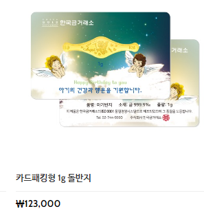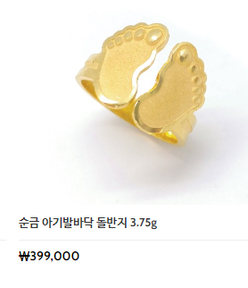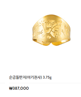 1g 돌반지는 가격이 가까운 지인들에게 선물하기에는 크게 보담스럽지는 않은 가겨은것 같습니다. 금반지를 선물하는 의미는 건강히 잘 자라라는 의미와 나중에 필요할 때 유용하게 사용하라는 의미가 있는 선물이라고 하네요..