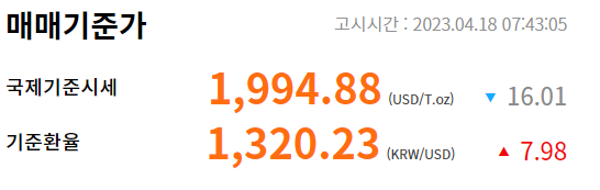 2023년 4월 18일 오늘의 금시세 금1돈 가격 돌반지 1돈 가격 정리해 드리겠습니다. 오늘의 금시세 금1돈 가격은 한국금거래소 공지를 참고하였습니다. 금1돈 시세 이외에 최근 가격이 부쩍 올라 부담스러운 돌반지 1돈 가격, 돌반지 대체 금상품, 금투자 방법, 금값 전망 등도 간략하게 정리를 하였습니다.