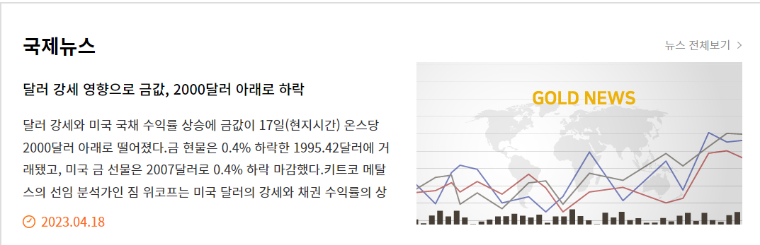오늘 4월 19일 국제 금시세는 달러 강세와 미국 국채 수익률 상승에 금값이 17일(현지시간) 온스당 2000달러 아래로 떨어졌다고 합니다. 금 현물은 0.4% 하락한 1995.42달러에 거래됐고, 미국 금 선물은 2007 달러로 0.4% 하락 마감했습니다.