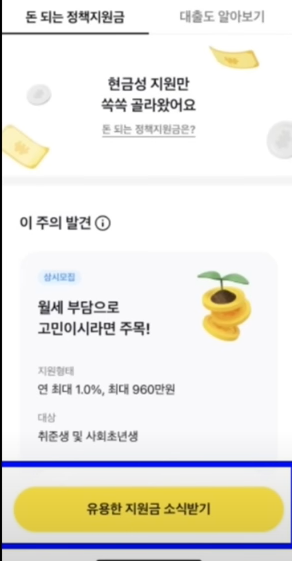 돈 되는 정책 지원금이 있습니다 돈 되는 정책 지원금을 클릭합니다.